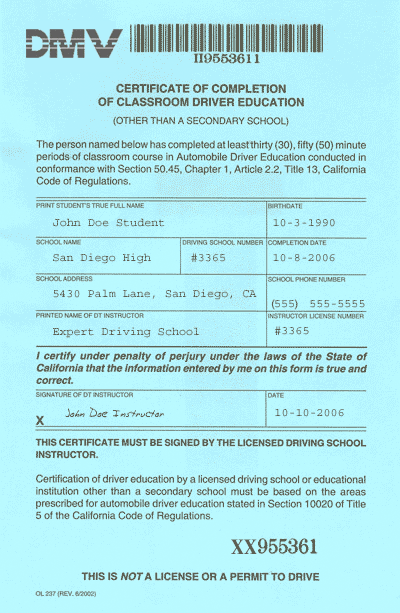 In order to get your California Driver's Permit, you must enroll in a Behind